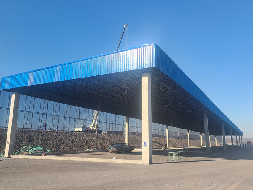 螢石料場(chǎng)料棚全面安裝完成