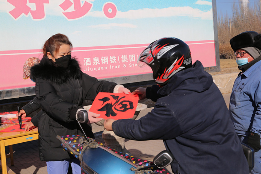 1月24日,在農(nóng)歷虎年春節(jié)即將到來之際,集團公司工會組織職工藝術(shù)協(xié)會部分書法愛好者為酒鋼職工現(xiàn)場書寫春聯(lián),向他們致以新春美好祝福。